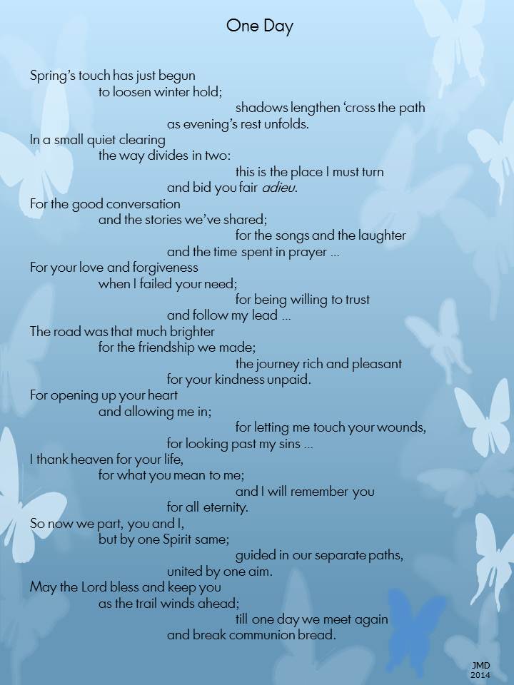 1. So touching. Thank you for sharing this John. I know the time is close for your mother to part from you and your family. This poem touches all the points of being loved and loving. What a rich life she has shared with you, and what a rich life you share with others. it gets passed along, and down to those we allow into our most inner feelings. I feel fortunate to know you and LaJunta, and thus know your Mother through you.