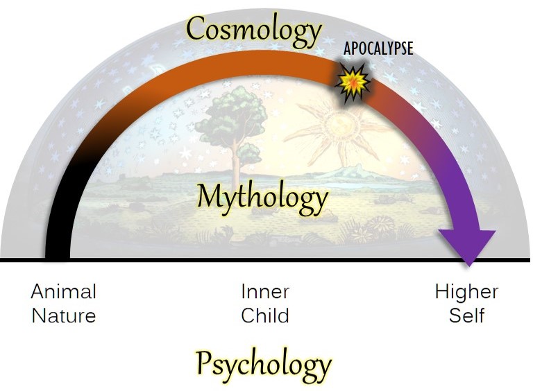 As I said, from inside mythology the Apocalypse will be seen as near or far in the future. Those whose consciousness is still centered in a mythopoetic (storytelling) mode of experience will look out on reality through the lens of sacred fictions. They are oriented on the archetypes, characters, exemplars, and ideals designed to urge their imitation, obedience, and aspiration through the course of their coming of age.