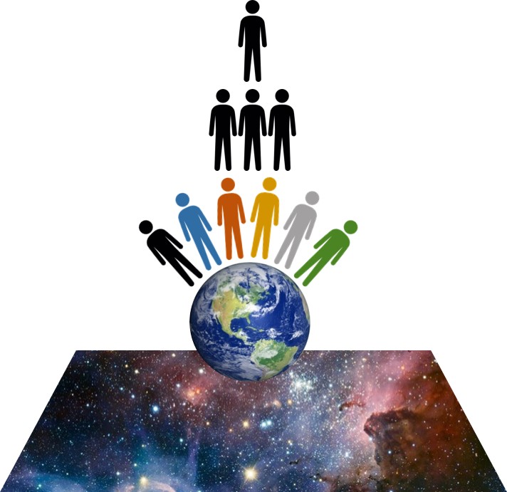 Of course, beyond the field of local attachments, common beliefs, and shared lifestyle there are many others – and many different types of others. In my diagram the different colors of human form represent the remarkable diversity of humankind: living in different places, different cultures, and carrying on in very different ways. But they are all human, which means that if you cared to, you could allow your horizon of identity expand so as to include everyone else, regardless of what makes them different from you.