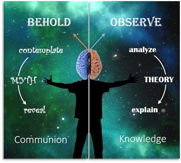 Myths are stories of communion, and theories are stories of knowledge. One constructs meaning out of a primary experience of oneness with reality, while the other constructs meaning as a system of explanations by which reality is increasingly known.