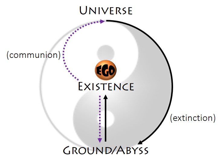 The aspect of reality into which all things eventually dissolve is named the Abyss. It is the dark chaos of pure potentiality as theorized by science, and the primordial dragon containing the energies of creation as depicted in the myths of religion, opened up by the s/word of a god and giving birth to the cosmic order.