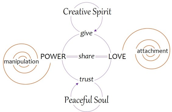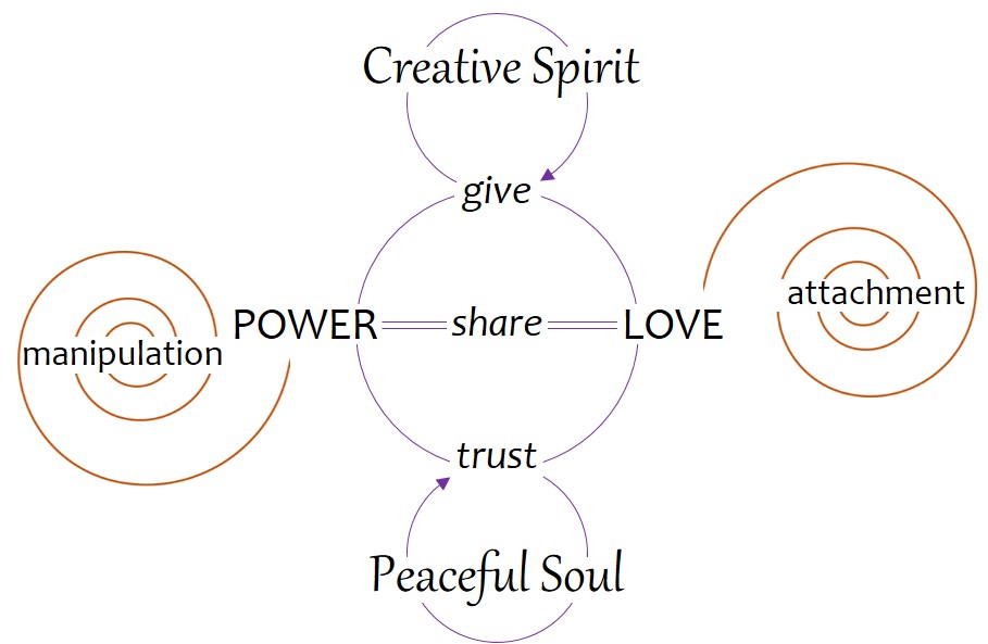 Now we can see that where the neurotic ego struggles most is in the dynamic balance of love and power which characterizes every relationship. This balance can be further analyzed into the ability of partners to share what they have with each other, to give to the relationship what it needs to be healthy and strong, and most fundamentally to trust themselves, each other, and the relational process itself.