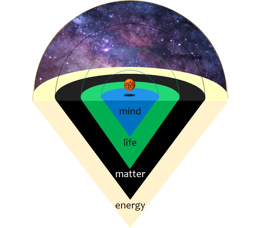 Ego, then, is not simply another step up along the axis of nested centers described earlier. Establishing a center of personal identity actually entails a detachment from the grounding mystery of mind, life, matter, and energy that underlies and supports it.