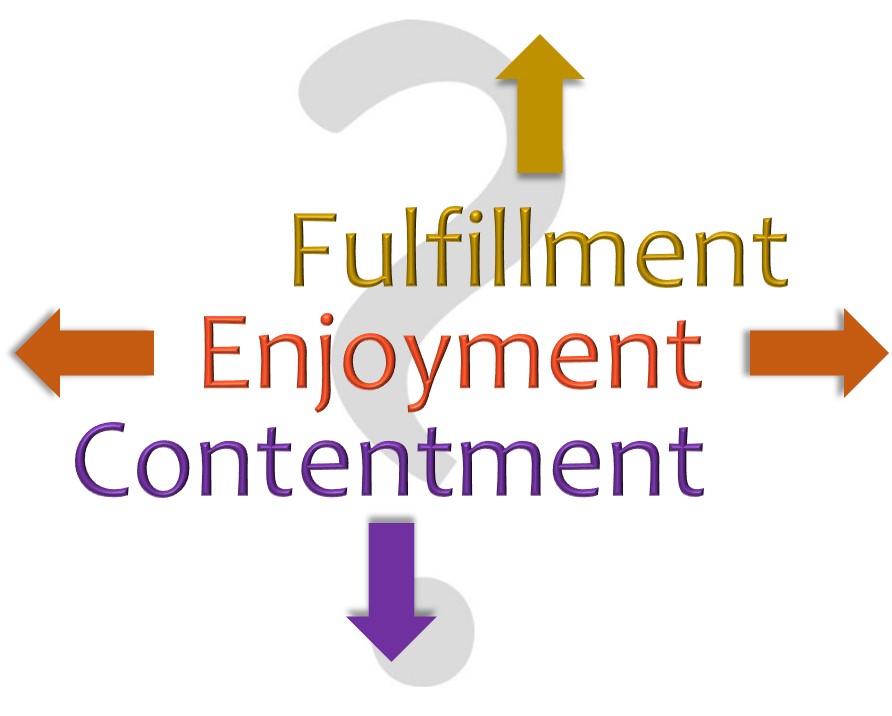 Hearing the words side-by-side – contentment and enjoyment – confirms their distinct connotations. If contentment is inner peace, enjoyment is more about our relationship to the world around us. When we are content, we want for nothing. When we are enjoying something, we tend to want more – not crave it or desperately need it like an addiction, but to stay with it because we find it amusing, intriguing, interesting, or inspiring.