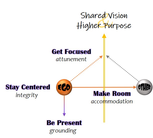 My diagram identifies four critical disciplines that partners need to practice in their work together. “Ego” (Latin for “I”) represents you or me as we engage with this process, while “other” is another person – a committee or team member, spouse or life partner, or anyone with whom we are in relationship.