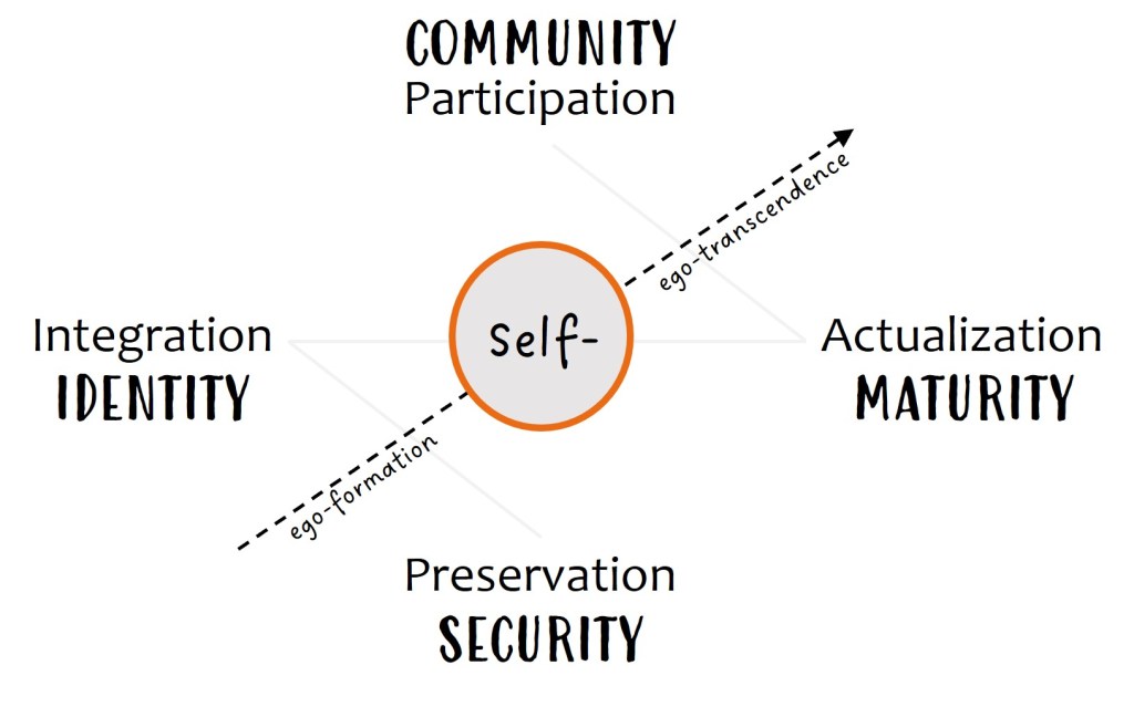 These four terms – security, identity, maturity, and community – mark the major stages in our human development. Each one is focused psychologically on a specific priority which must be successfully incorporated into our developing sense of self for our Hero’s Journey to reach its completion. For this reason we can summarize the entire model as a developmental scheme of Four Priorities.