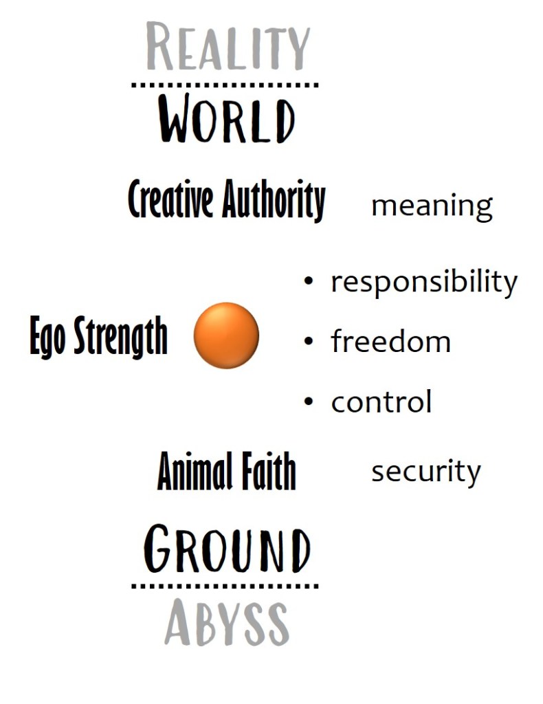 This forward shift in faith development corresponds to the progress of religious sensibility from animism to theism, from a body-centered and nature-based spirituality to one that is ego-centered and based in the society of your tribe – referring to the protected membership of a shared social identity. An important part of this shared identity is the deity, as a common focus of authority, inspiration, and worship.