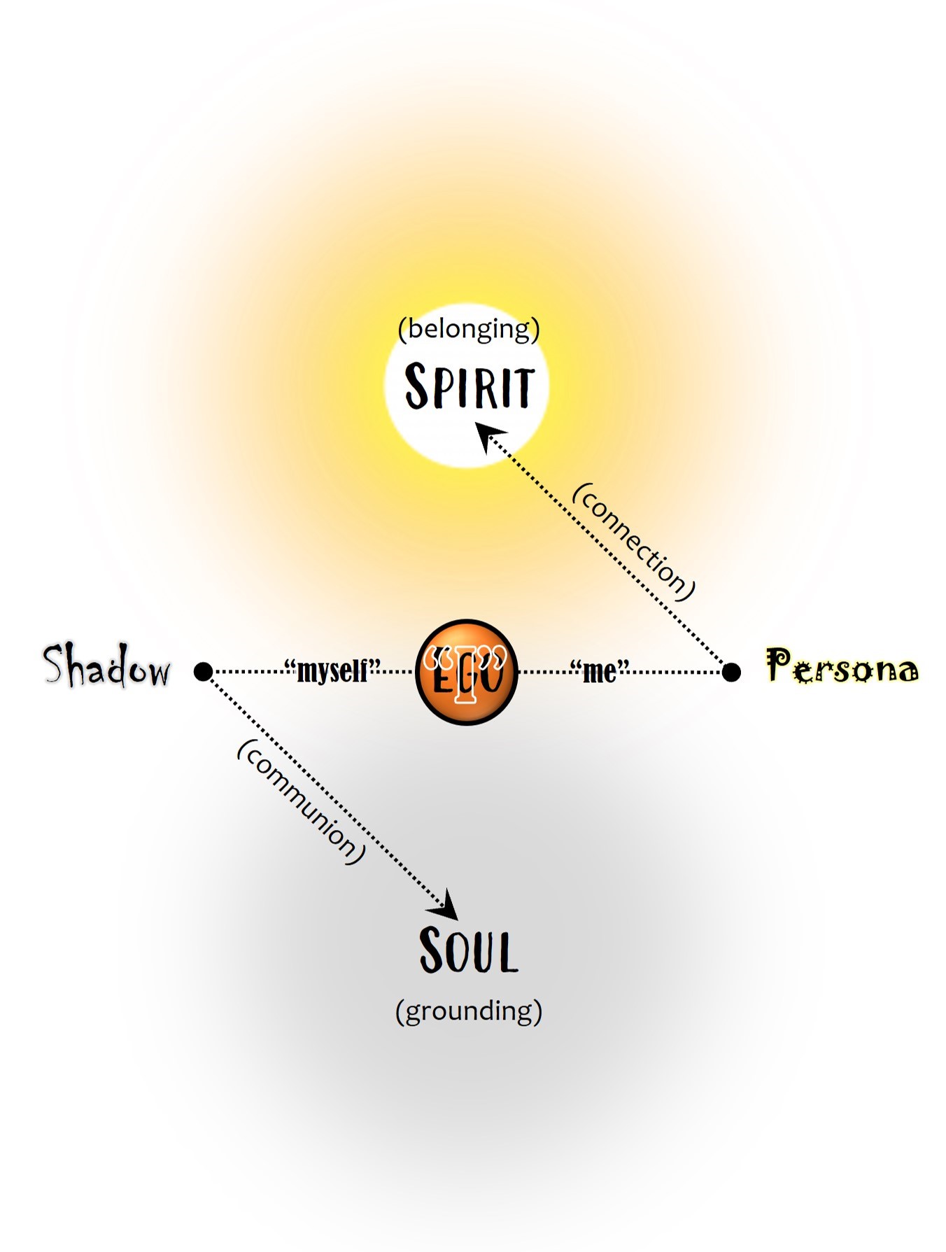 If you came up in a religiously affiliated household of taller powers, your background conditioning served to situate your identity in the moral frame of your tribe, instilled with the desire to be good and belong (notice the halo above your ego in my diagram).